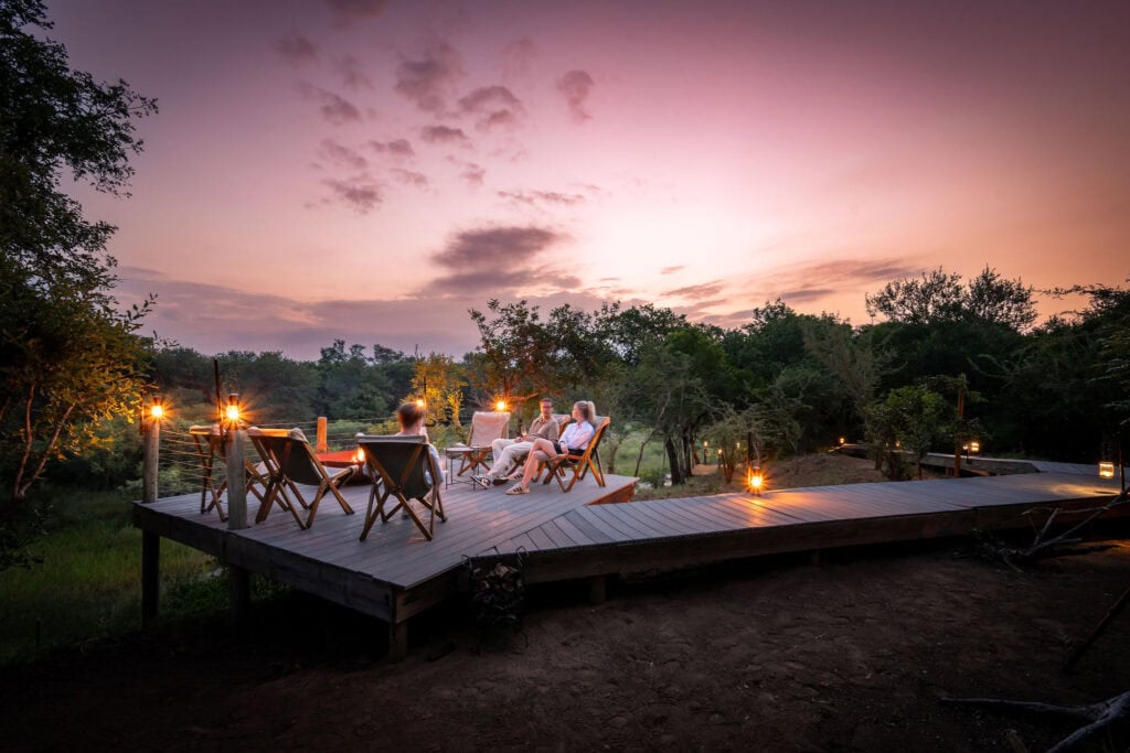 Meerdere terrassen, patio's en uitkijkdekken nodigen u uit om de hele dag van de bush te genieten — van ontspannen bij het zwembad tot drankjes bij zonsondergang bij de vuurplaats of dineren bij de boma.